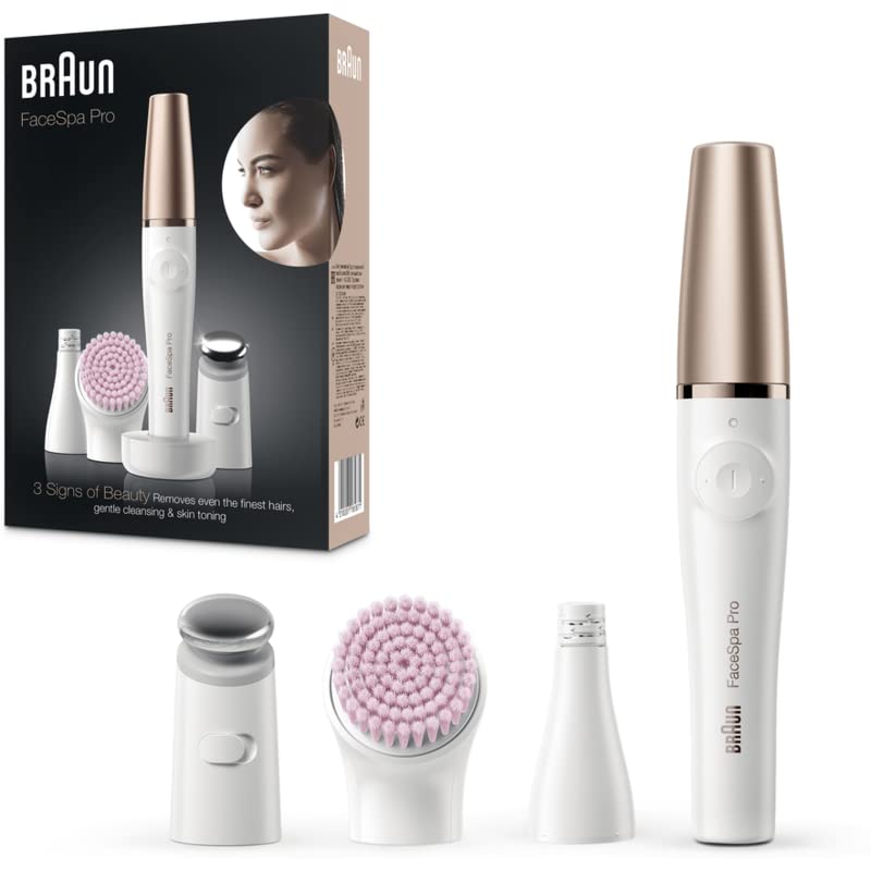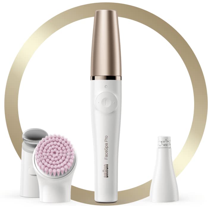 Specification: Braun Gezichtsepilator & Gezichtsborstel, FaceSpa Pro, Salonschoonheid Thuis, 3-In-1, Met 3 Extra’s en Standaard, 912, Wit/Brons