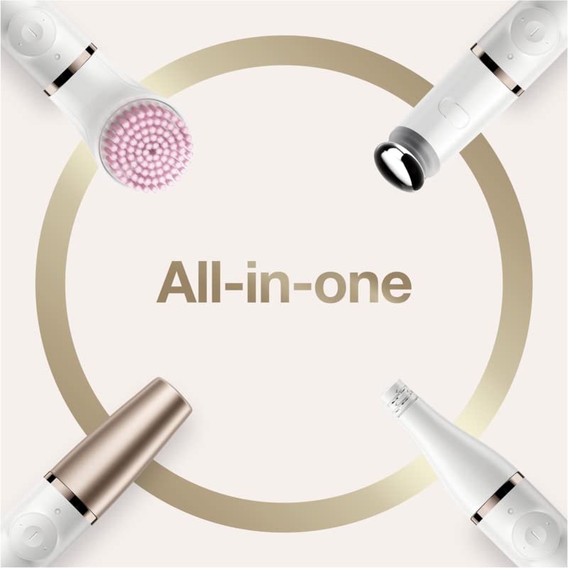 Braun Gezichtsepilator & Gezichtsborstel, FaceSpa Pro, Salonschoonheid Thuis, 3-In-1, Met 3 Extra’s en Standaard, 912, Wit/Brons